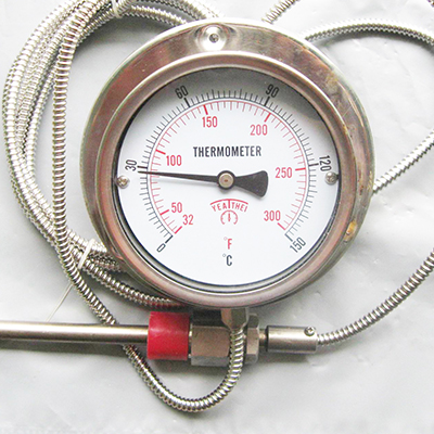 遠(yuǎn)傳雙金屬溫度計(jì)是將熱電阻或熱電偶的信號(hào)遠(yuǎn)傳功能與雙金屬溫度計(jì)就地指示功能相結(jié)合,它既能滿足現(xiàn)場(chǎng)測(cè)溫需求,亦能滿足遠(yuǎn)距離傳輸需求,遠(yuǎn)傳雙金屬溫度計(jì)可以直接測(cè)量各種生產(chǎn)過程中的 -40~+600℃范圍內(nèi)液體、蒸氣和氣體介質(zhì)以及固體表面的溫度測(cè)量。